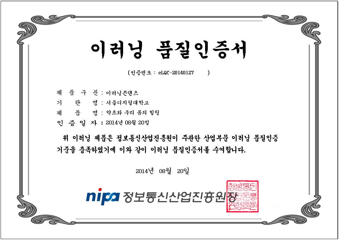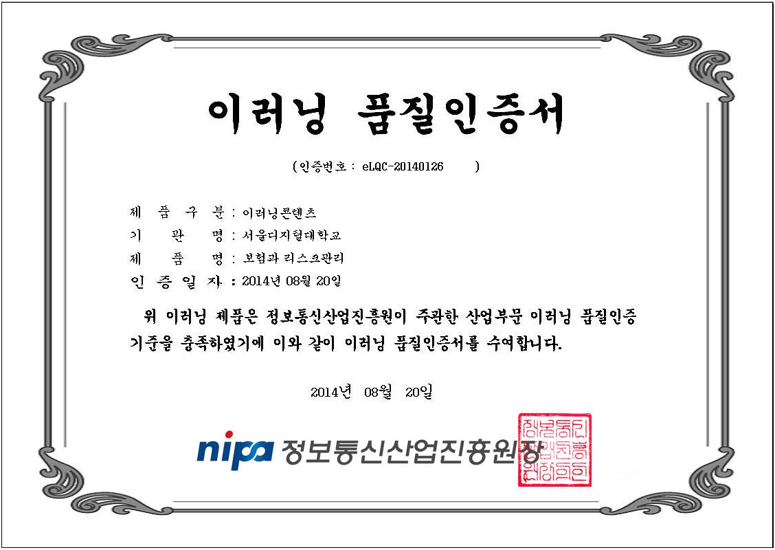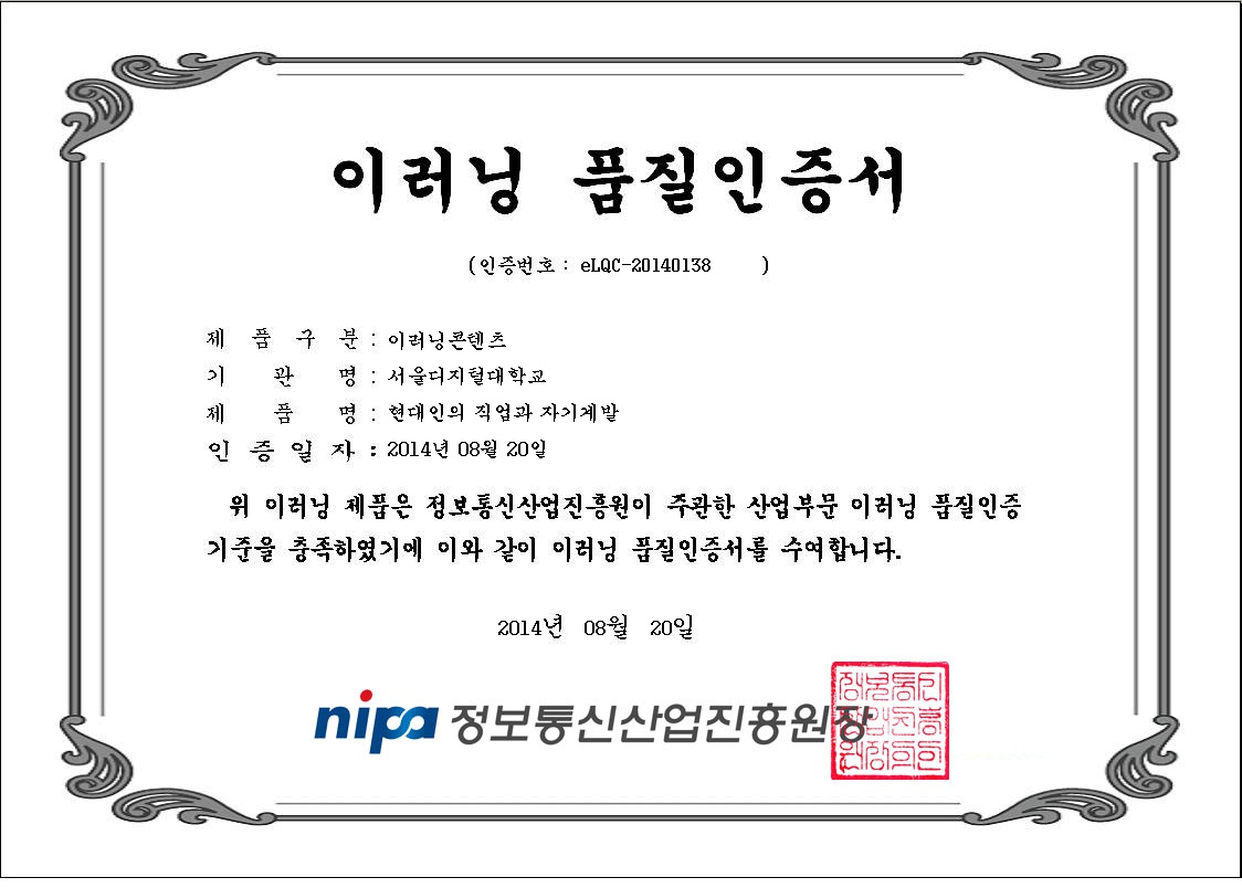 2014학년도 정보통신산업진흥원 품질인증 획득