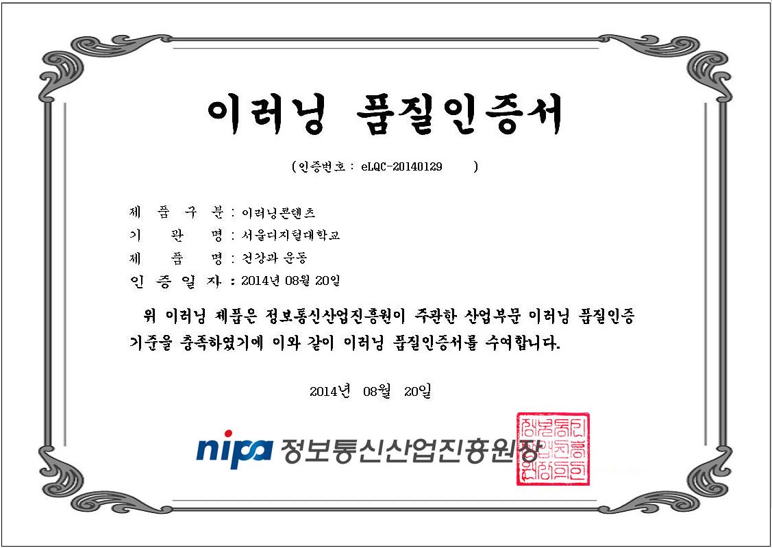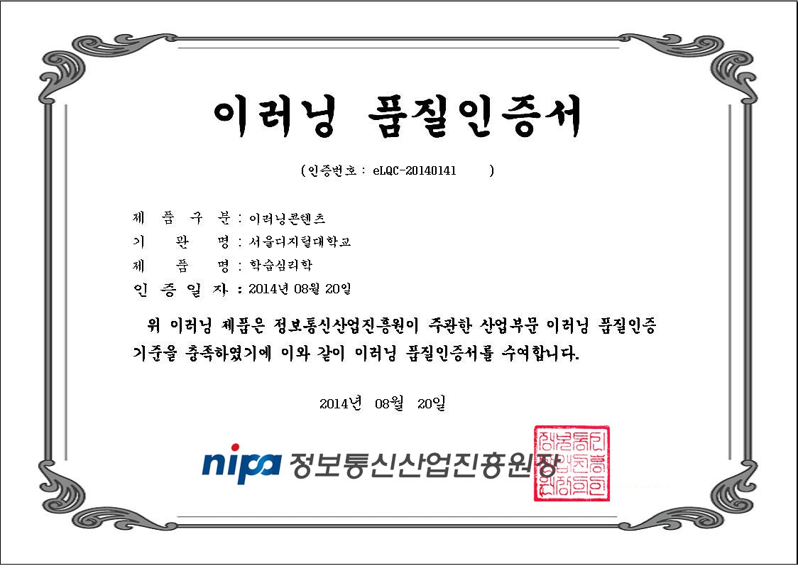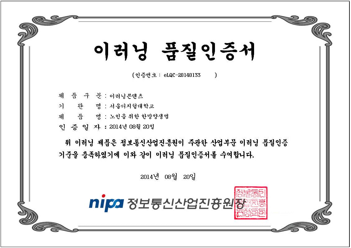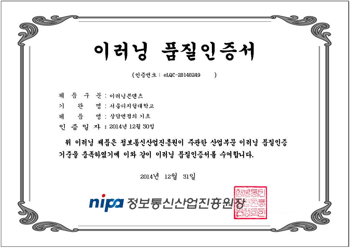 2014학년도 정보통신산업진흥원 품질인증 획득